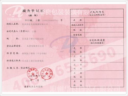公司名稱:滄州華良包裝有限公司 公司地址:河北省東光縣于橋工業(yè)區(qū) 電話:400-070-0190 傳真:0317-7749444 手機(jī):13832733434 網(wǎng)址: